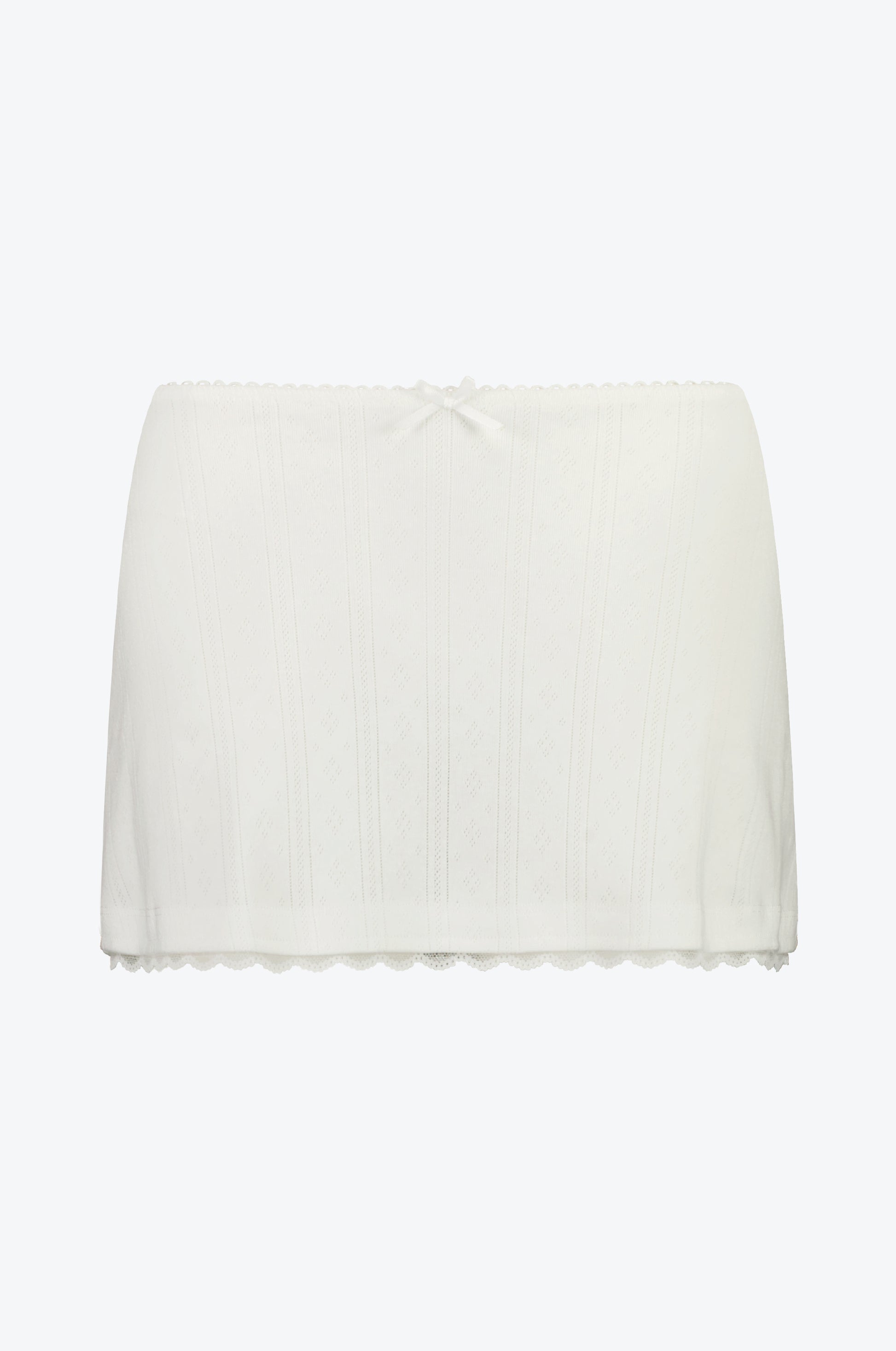 The Elisse Mini Skirt in pointelle is a go-to, comfy skirt for daily wear.