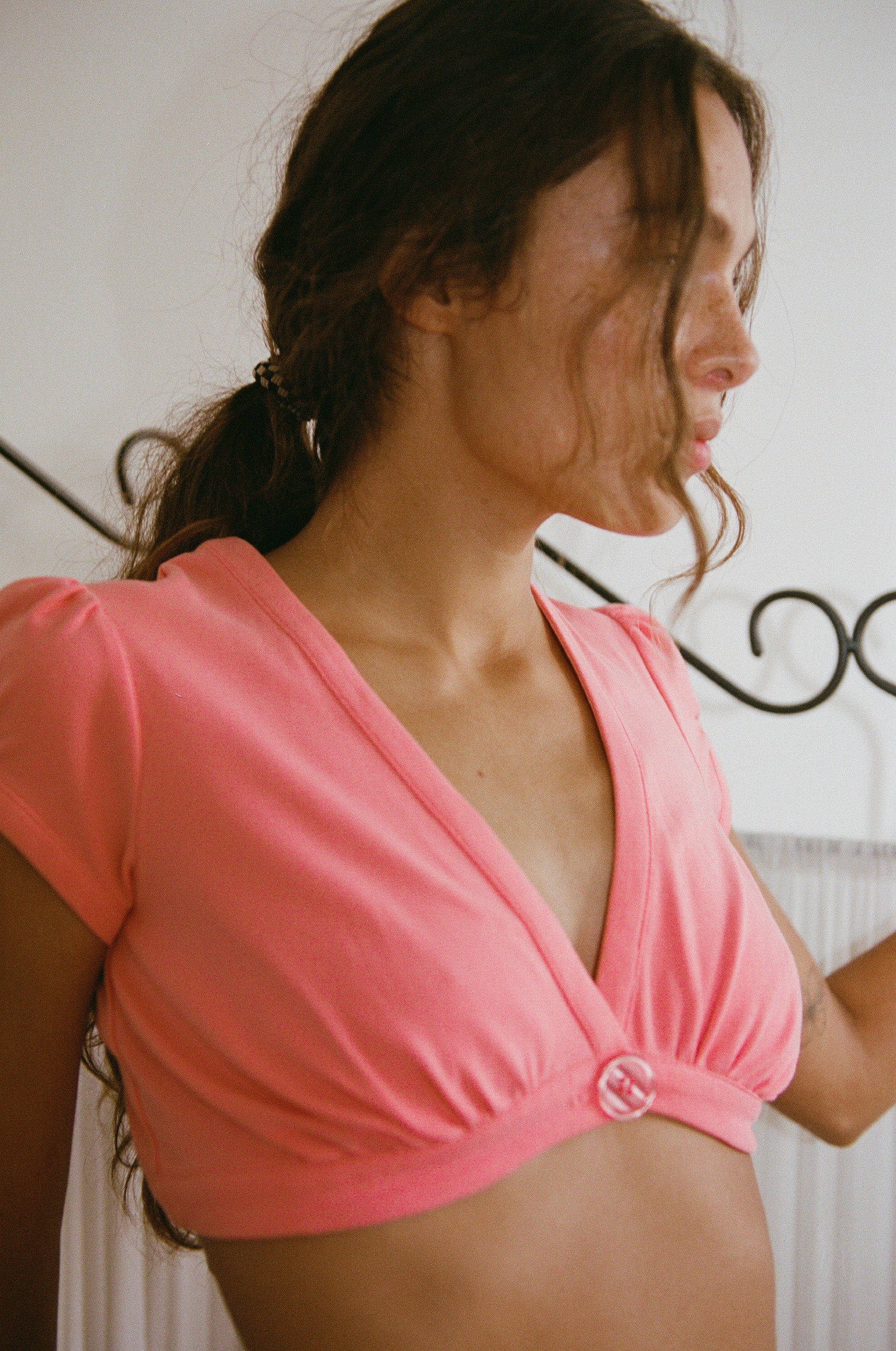 Coral is a vibrant pink shade with orange undertones. Style with the matching Costes Midi Skirt in Salted Coral. Matching slip skirt coming soon.