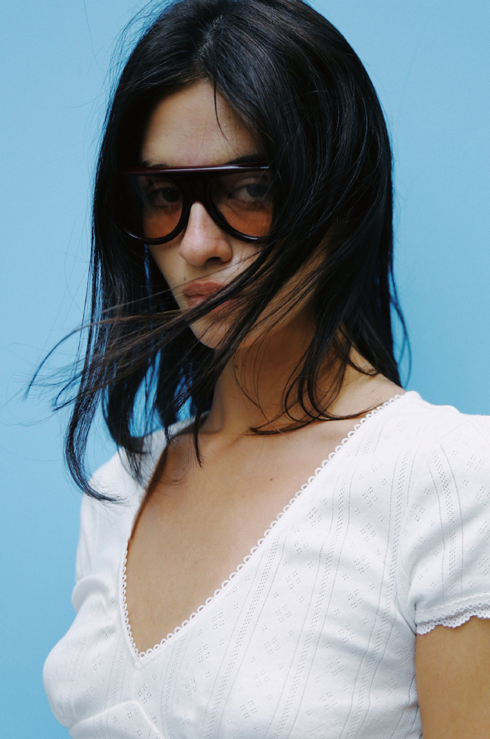 The Mira Top in pointelle is a feminine take on the classic fitted tee, designed to sculpt and flatter.