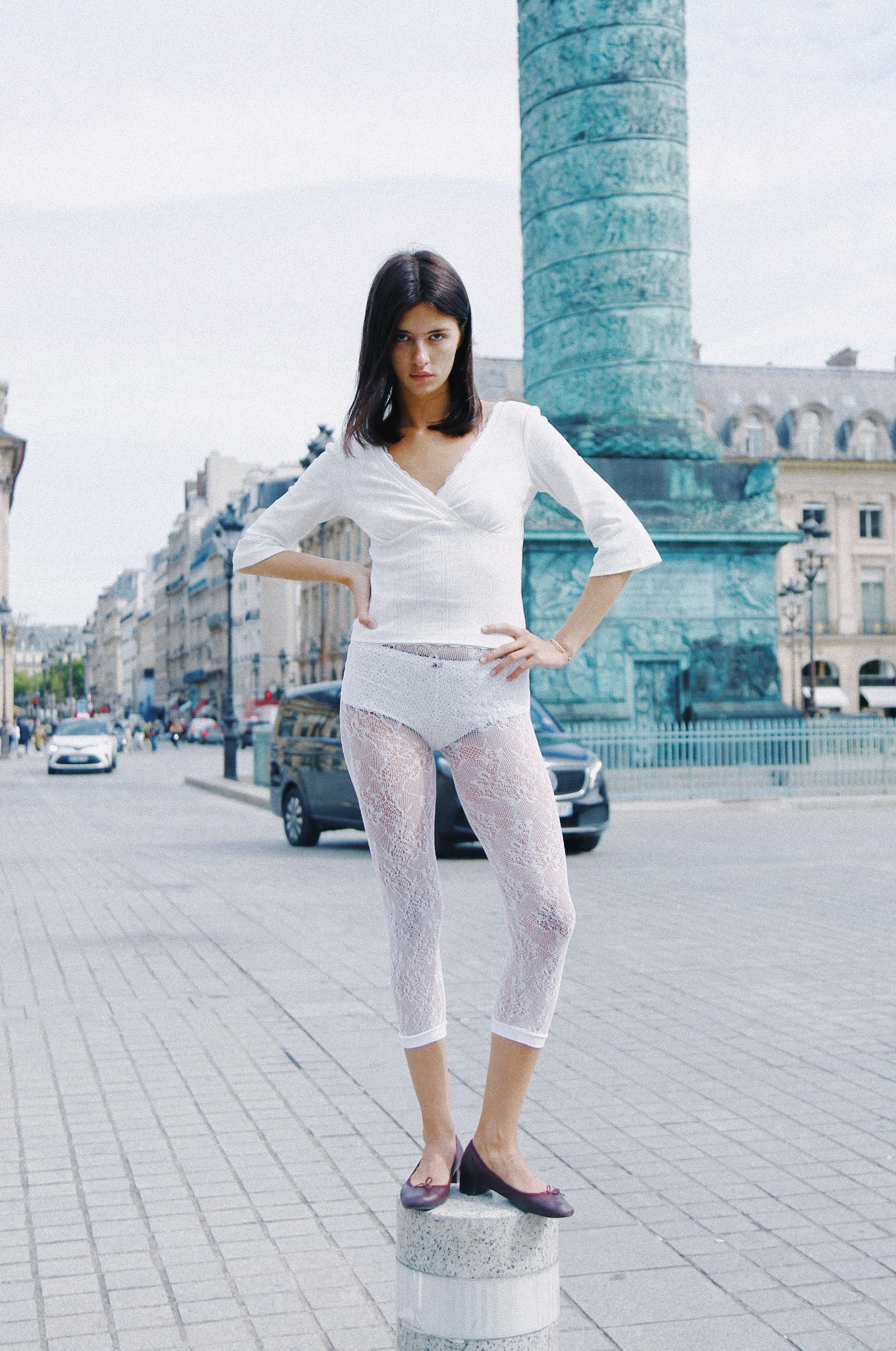 The Velina Top in pointelle is a flattering, transeasonal staple inspired by 90s silhouettes.