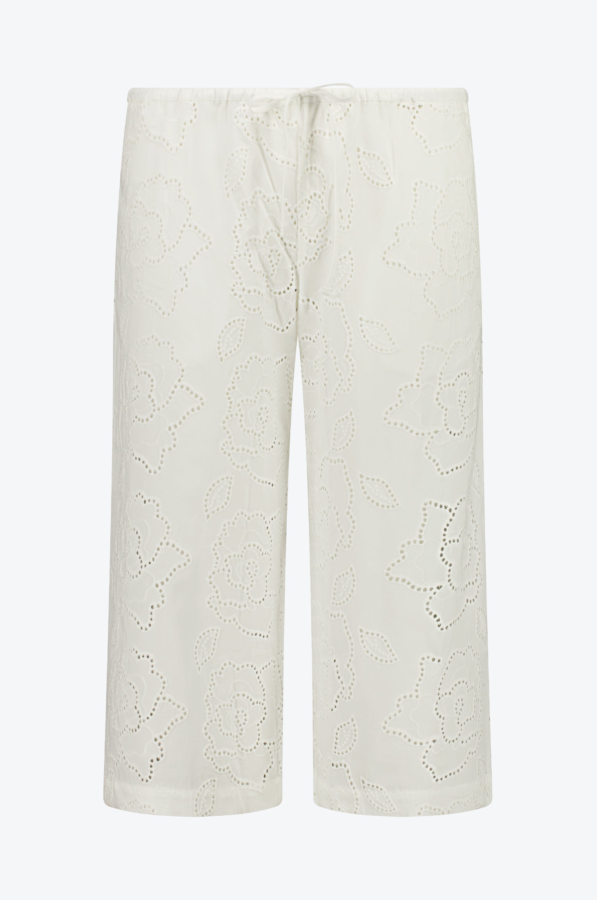 Designed with a flattering three-quarter capri length, these pants are crafted in a premium heavyweight broderie anglaise cotton that feels structured yet breathable.