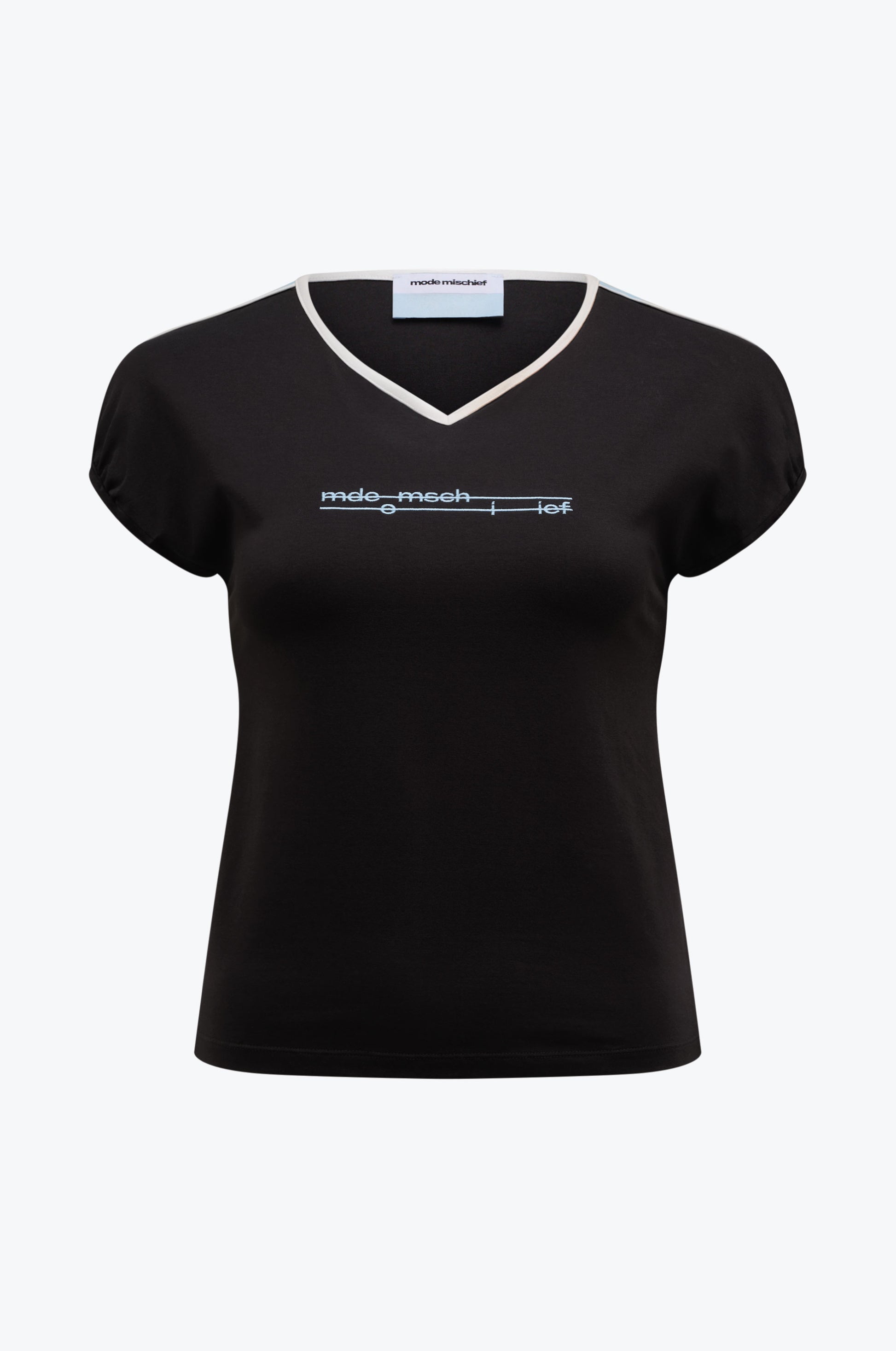 Detailed with Mode embroidery across the chest.