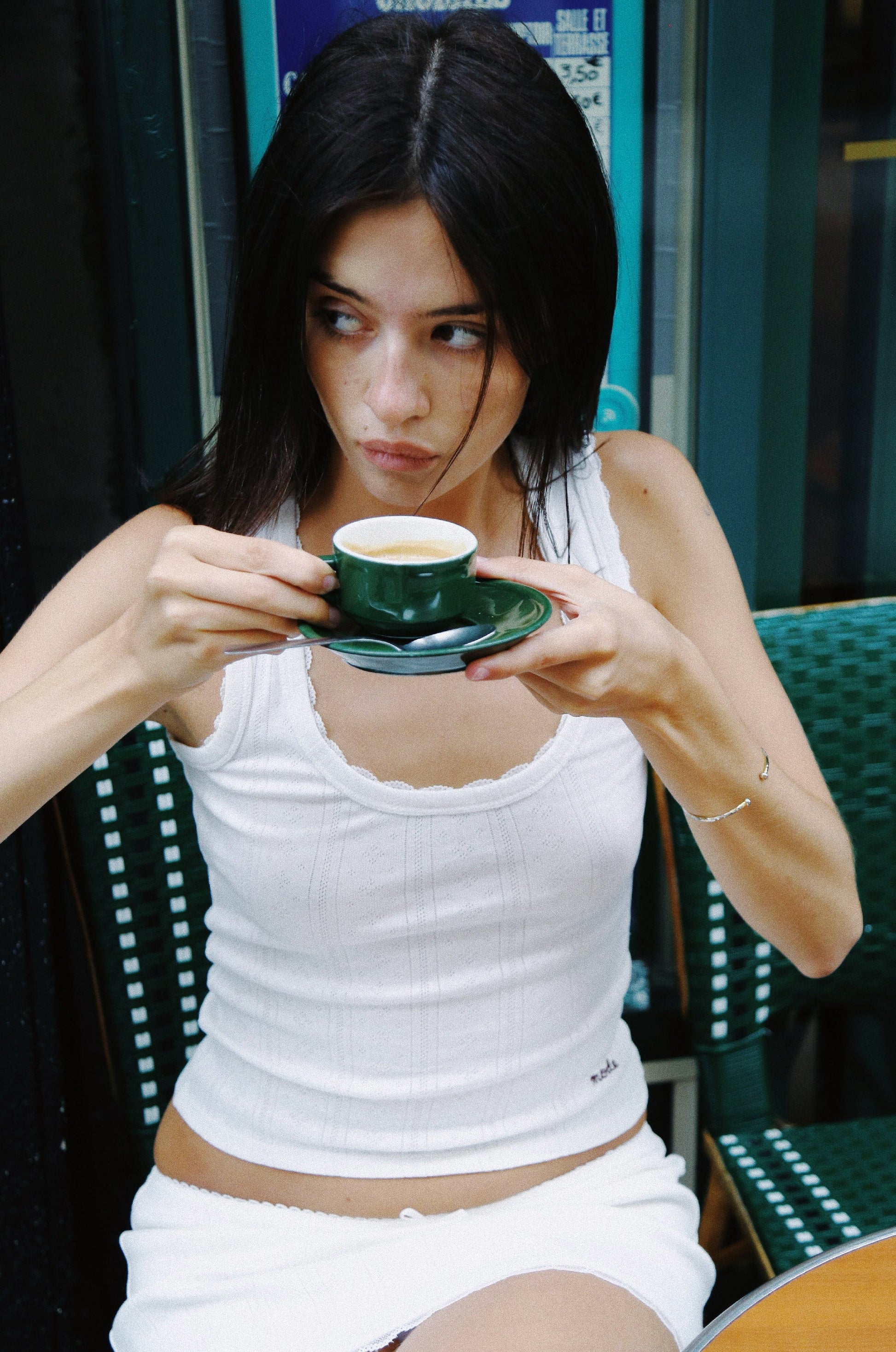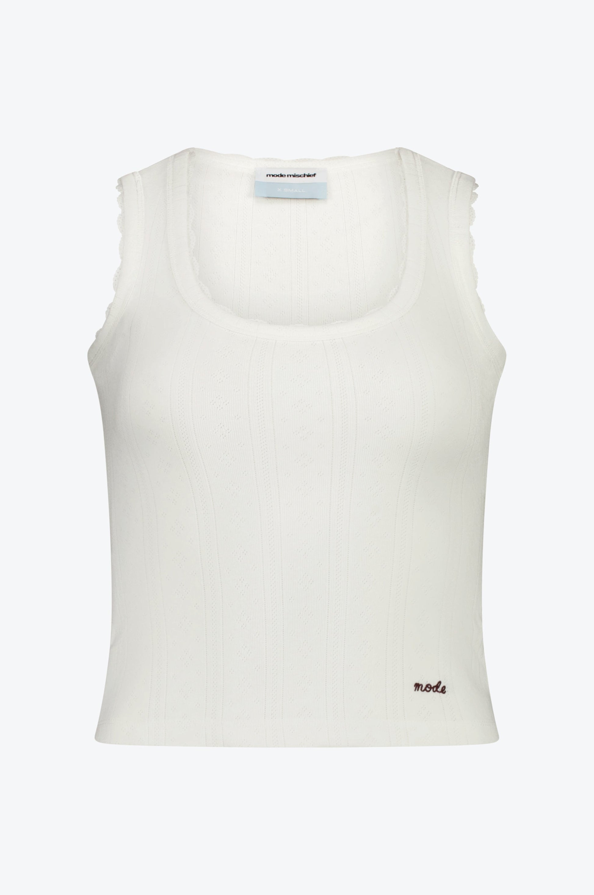 The Lyn Staple Tank in pointelle is a versatile, form-fitting tank designed for effortless layering.